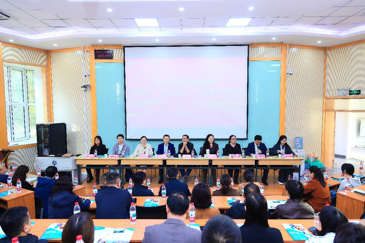 BBIN宝盈游戏官网党委副书记李冰封、副院长崔宝敏、教授代表杨丽、2025级中加班辅导员秦小晴,以及BBIN宝盈游戏官网2025级经济学(中加合作)专业全体家长和学生参加了见面会。