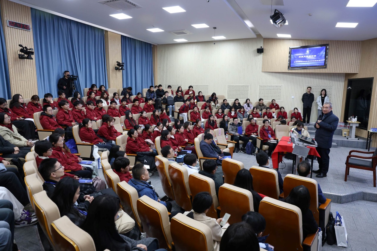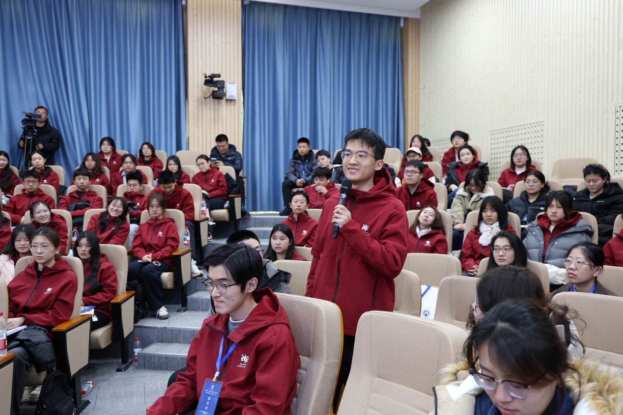 随后,2024级新结构经济学卓越人才实验班的赵一恒同学作为学生代表发言。赵一恒同学在汇报中回忆了自己与新结构经济学的不解之缘,分享了自己收到林毅夫教授回信时的激动和喜悦之情,并代表全班同学向林毅夫教授及各位领导老师做出承诺。他表示,作为新一代新结构经济学人,他们有勇气,也有信心,能够接过发展新结构经济学的接力棒,继续谱写这门学科的崭新篇章,为实现中华民族伟大复兴,构建人类命运共同体,贡献属于新结构经济学人的青春力量。