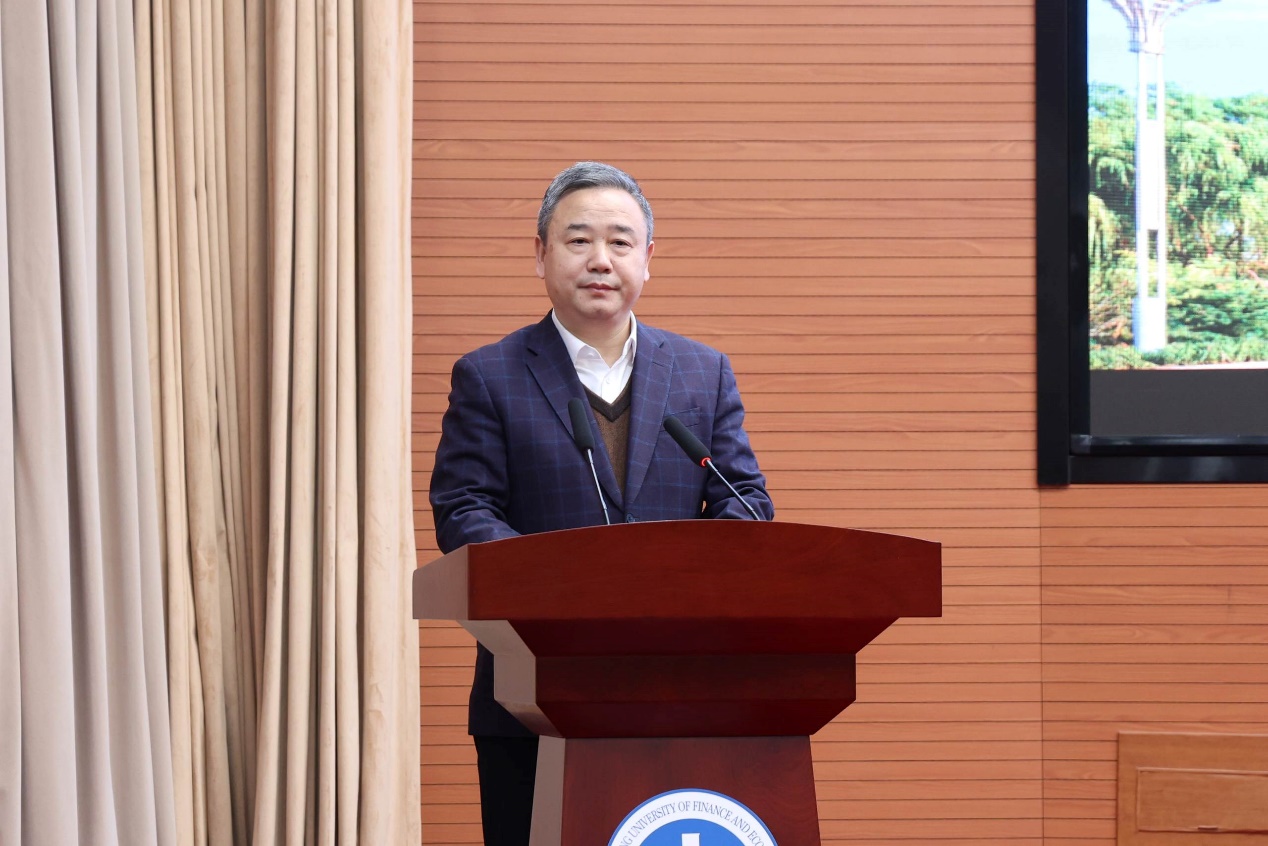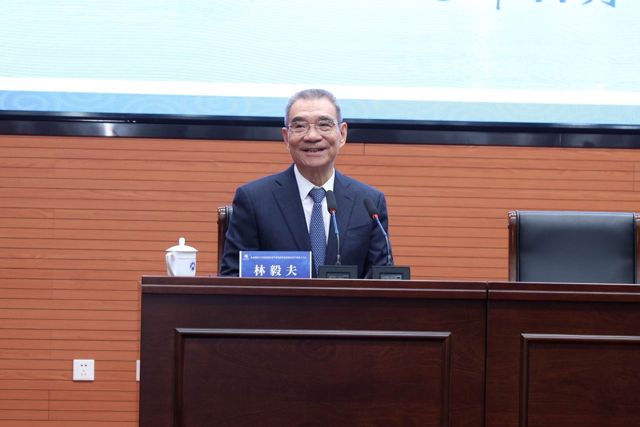 查玉喜代表学校全体师生员工对林毅夫教授以及各位领导、专家学者的莅临表示热烈欢迎,系统介绍了我校发展历程及建校以来所取得的显著成就。他指出,新结构经济学研究院和新结构经济学系的成立正是我校积极响应时代号召、推动经济学理论创新与学科建设走深走实的生动实践,意义重大、影响深远。他表示,我校将以本次成立大会为起点,在各位领导、专家的鼎立支持下,新结构经济学研究院和新结构经济学系将聚焦核心使命,深化理论研究,创新人才培养模式,拓展国际交流合作,力争产出一批标志性成果,为构建中国自主的经济学知识体系贡献智慧和力量。