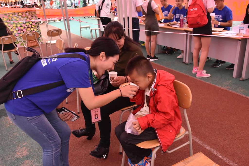 为迎接新生及家长的到来,学生会工作人员早早搭好帐篷,备好桌椅,供新生家长休息,备足饮用水,缓解夏日的炎热。