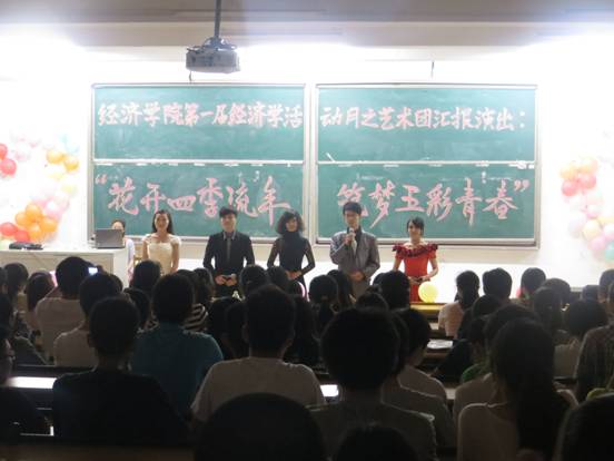 5月31日晚上7:00,BBIN宝盈游戏官网在圣井校区敏行楼B5201教室举办主题为“花开四季流年,筑梦五彩青春”的艺术团汇报演出。我院2012级各班同学到场观看。
