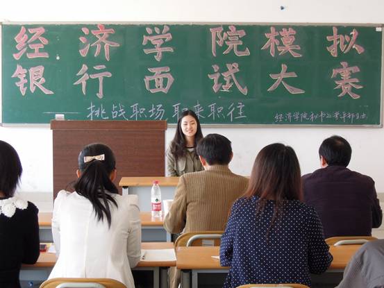 4月13日早上8:30,由BBIN宝盈游戏官网学生会举办的“挑战职场,职来职往——模拟银行面试大赛”活动在圣井校区敏行楼B5401教室顺利进行。中国建设银行山东省分行营业部人力资源部副总经理孙中会、经理庞梦雨担任此次大赛的评委。我院圣井校区11级、12级同学参加此次活动。