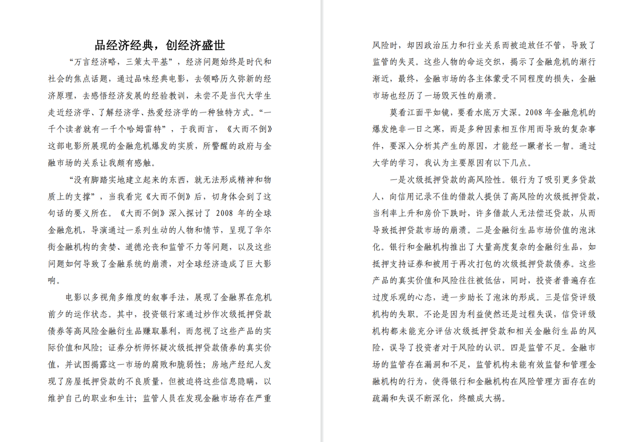 本次影评大赛激励同学们养成勤学善想、知行合一的学术精神,善于探究生活中的经济现象产生原因并提出解决措施,鼓励同学们课本与实践相结合,助力同学成长成才。