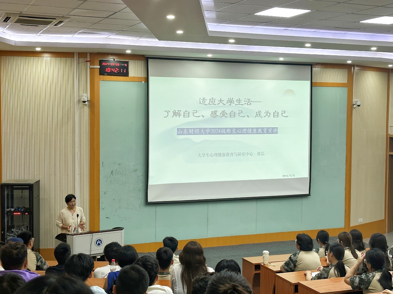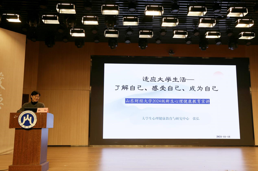 (通讯员:范嘉颖 戴悦偲)为贯彻落实《全面加强和改进新时代学生心理健康工作专项行动计划(2023-2025年)》要求,引导学生正确认识自我,提升情绪管理能力,更好地适应大学生活,BBIN宝盈游戏官网于9月6日晚上、11月14日晚上分别在舜耕校区第三阶梯教室和圣井校区文化活动中心报告厅举办心理健康教育讲座,讲座特邀BBIN宝盈游戏官网大学生心理健康与研究中心副主任、国家二级心理咨询师张弘主讲,BBIN宝盈游戏官网2024级全体学生参加。